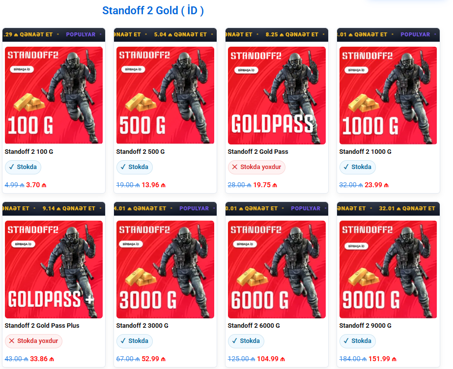 Standoff 2 Gold paketləri artıq ValyutaMobile sayəsində daha sərfəli oldu. Standoff 2 oyunçuları artıq heç bir vaxt itirmədən, Birbaşa İD vasitəsilə oz Standoff2 Gold balansını artıra bilərlər.
